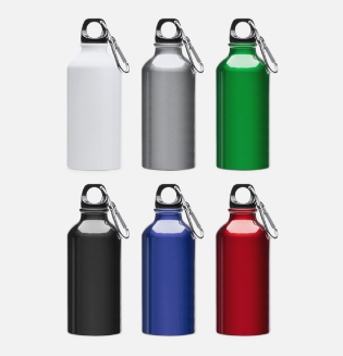 Bidón de aluminio con mosquetón con capacidad de 400 ml. Personaliza el bidón, en uno de sus divertidos colores.