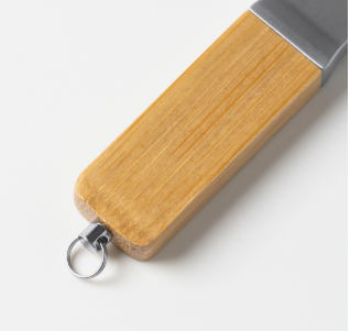 Memoria USB con cuerpo de bambú y capacidad de 16 GB.