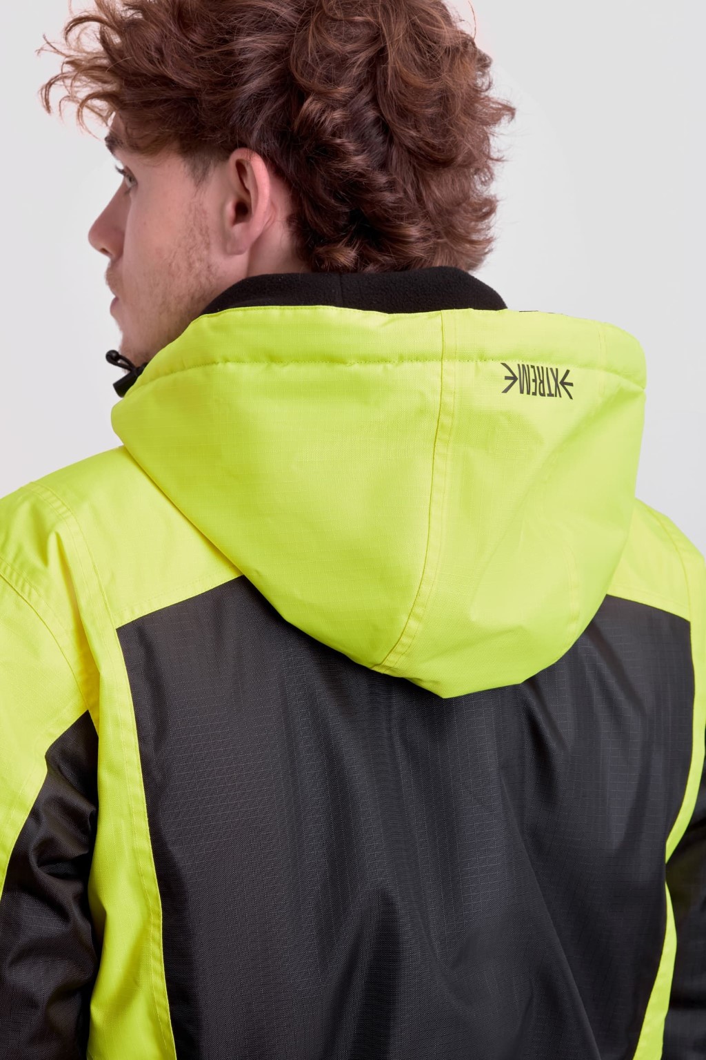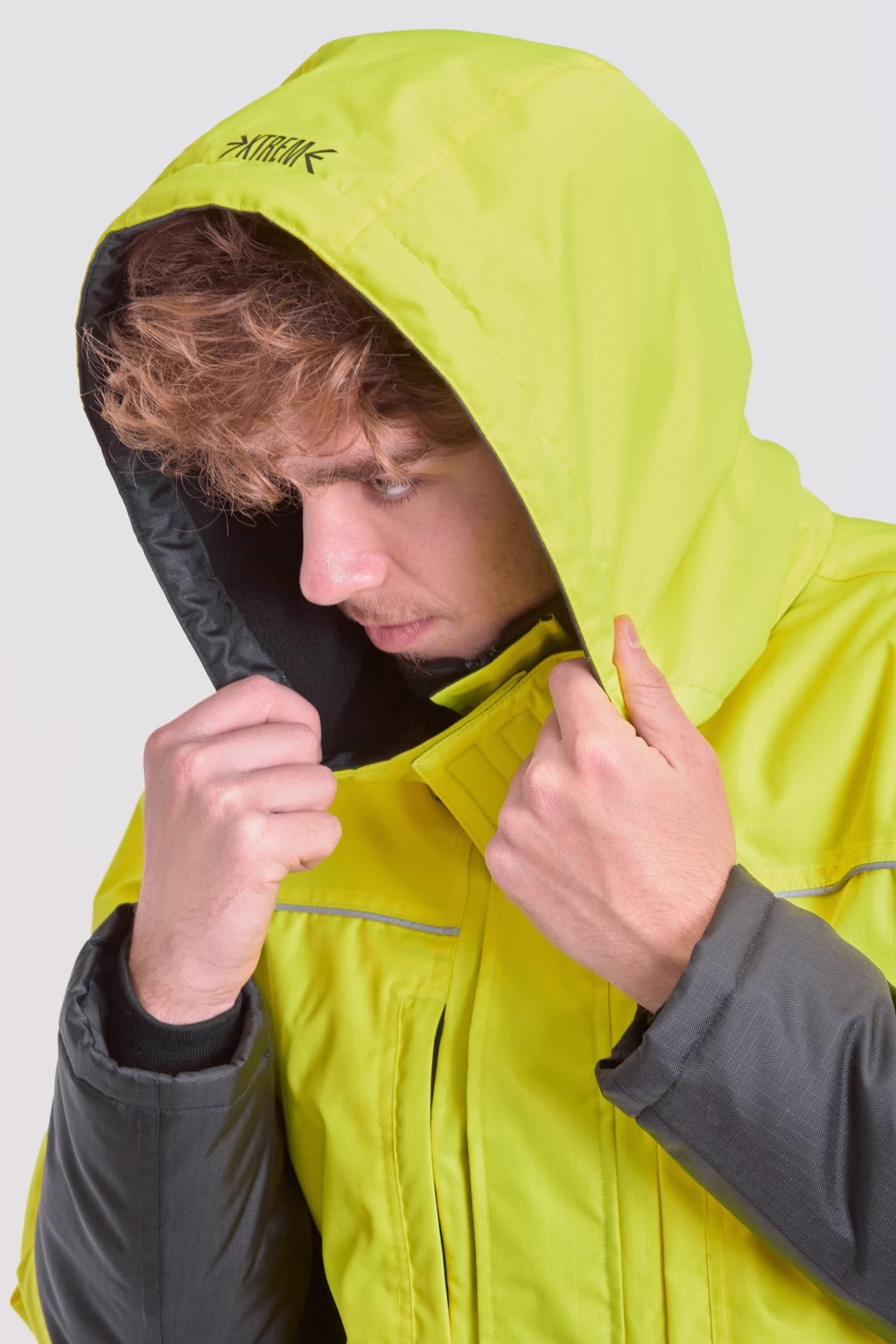 Parka impermeable acolchada, de visibilidad realzada con cintas reflectantes y tejido Ripstop. Cuello alto y capucha forrada con polar, ajustable con cordón elástico. Cierre de cremallera oculta por solapa postiza con velcro. Dos bolsos de pecho y dos laterales con cierre de cremallera. Una cinta reflectante en delantero, espalda y mangas. Cinta decorativa personalizada en mangas. Vivo reflectante. Puño elástico en el interior de la manga. Cordón elástico con pieza ajustable en el bajo. Tejido especial contra ambientes fríos por debajo de -5ºC.