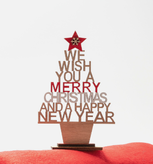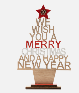 Árbol navideño realizado en madera con mensaje. Base desmontable. El adorno navideño perfecto para decorar tu lugar favorito.